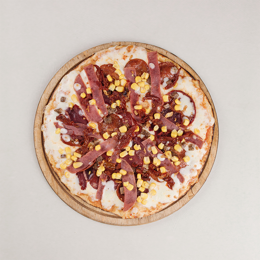 Domates Sos, Mozzarella Peyniri, Salam, Sucuk, Pepperoni, Kavurma, Pastırma, Mısır