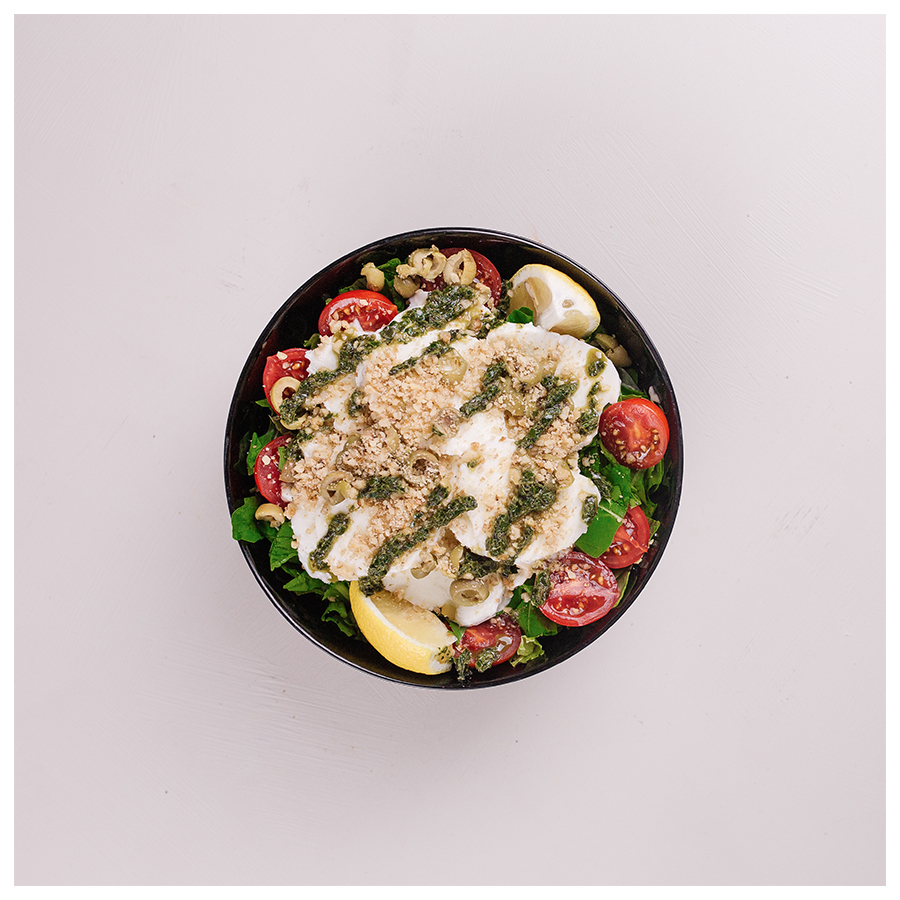 Lolorosso, Roka, Aysberg, Suda Mozarella, Ceviz, Pesto Sos, Cherry Domates, Limon, Yeşil Zeytin