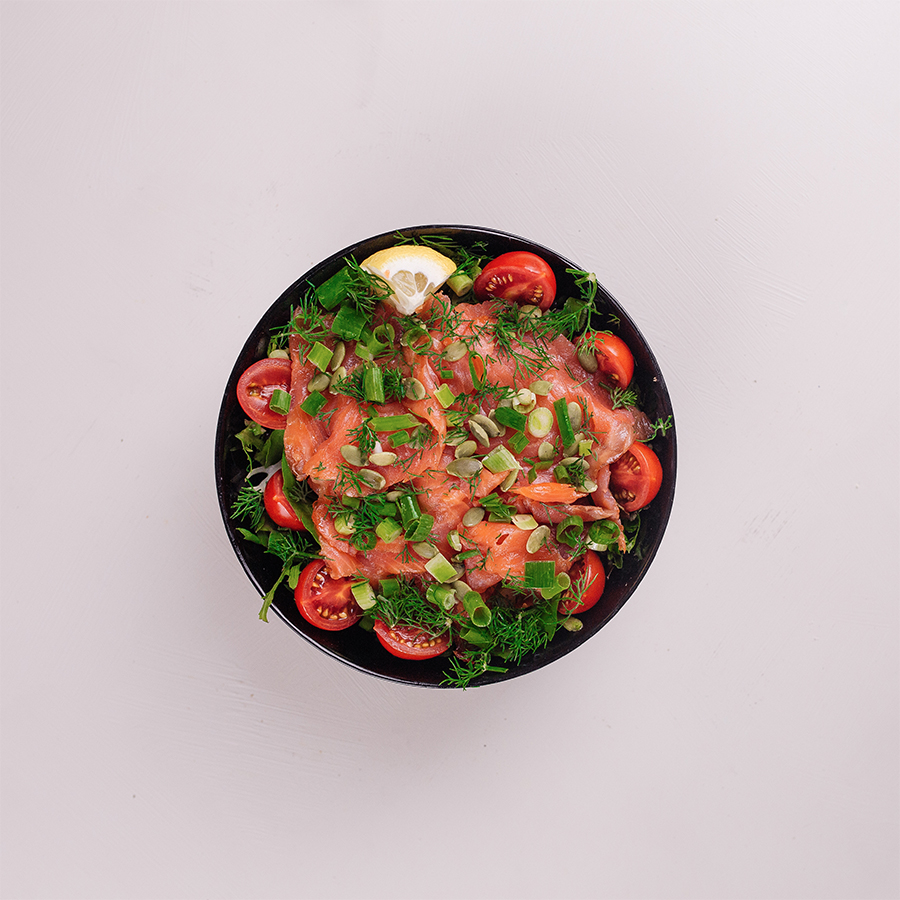 Somon Füme, Cherry Domates, Limon, Dereotu, Kabak Çekirdeği, Iceberg Marul, Lolorosso, Roka