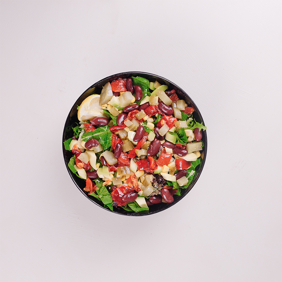 Meksika Fasulyesi, Taze Soğan, Çubuk Turşusu, Mısır, Köz Kapya Biber, Limon, Lolorosso, Iceberg Marul, Roka